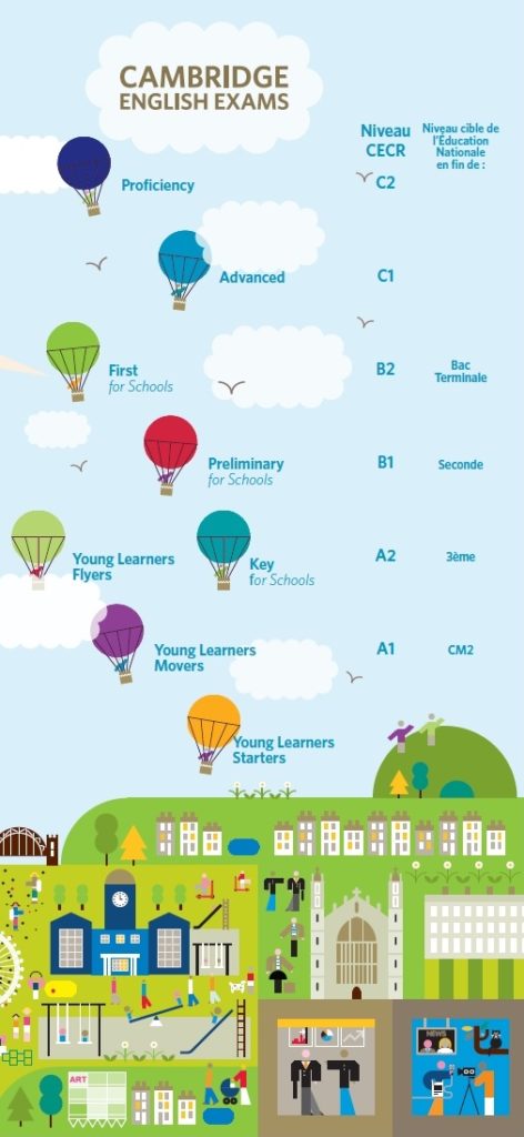Cambridge English: Young Learners constitue une série de tests d’anglais ludiques amusants, destinés aux élèves des écoles primaires et des collèges. Ils offrent aux enfants un moyen efficace d’apprendre l’anglais et d’aborder la sixième avec assurance et sérénité.