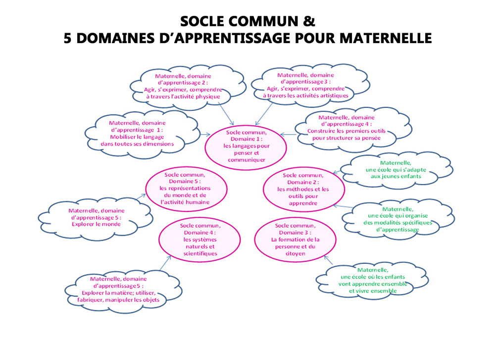 L’école Maternelle à My School suit « le socle commun de connaissances, de compétences et de culture » de l’Education Nationale et les enseignements sont organisés en cinq domaines d’apprentissage :